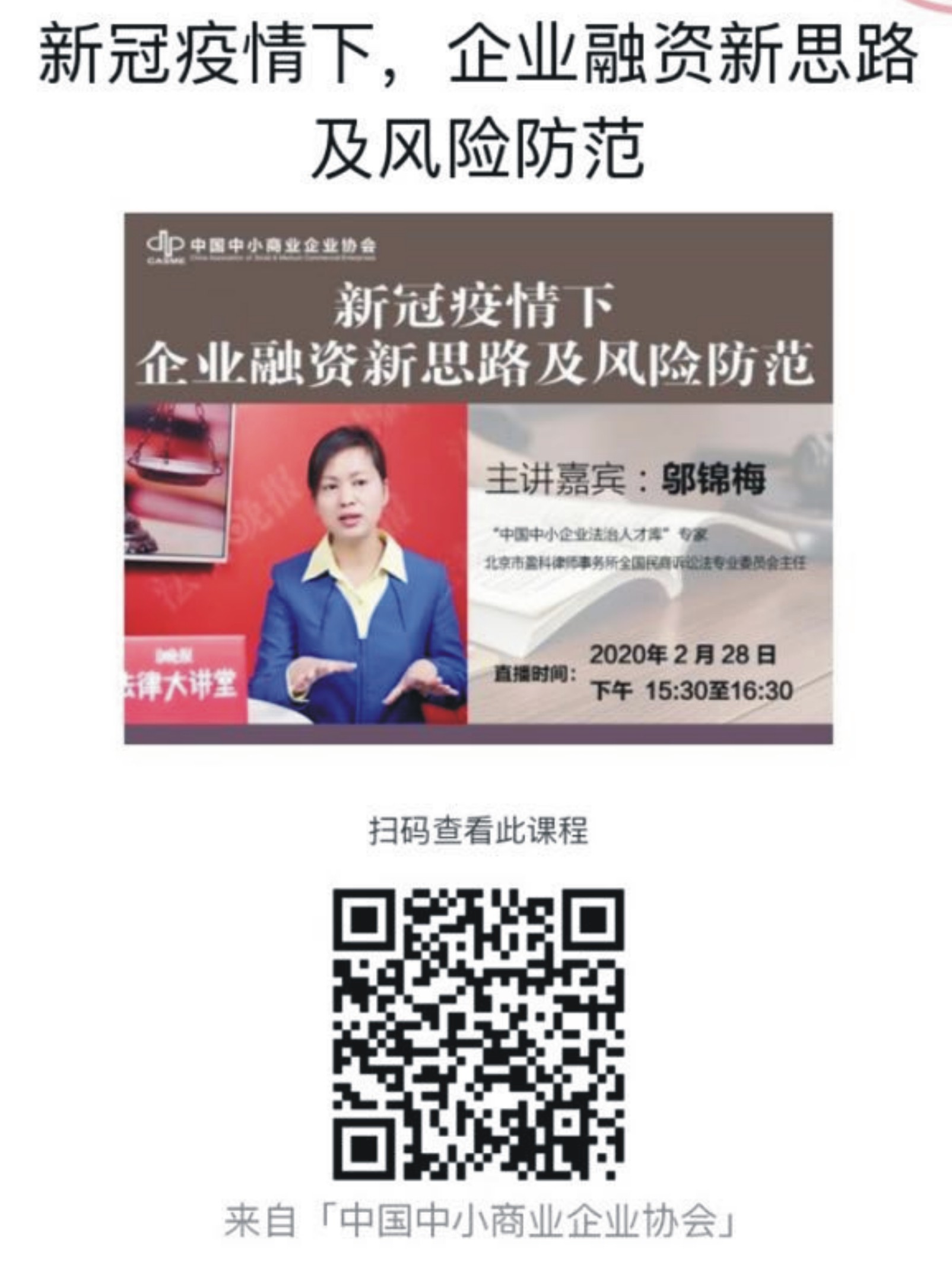 【邬锦梅◆直播】新冠疫情下,企业融资新思路及风险防范